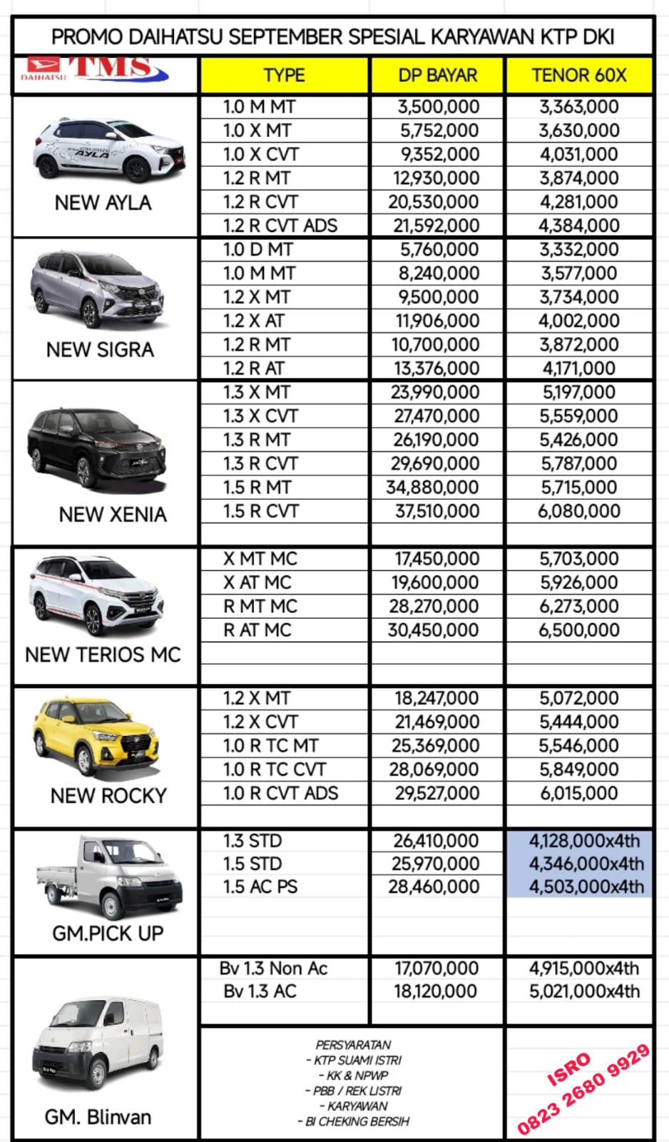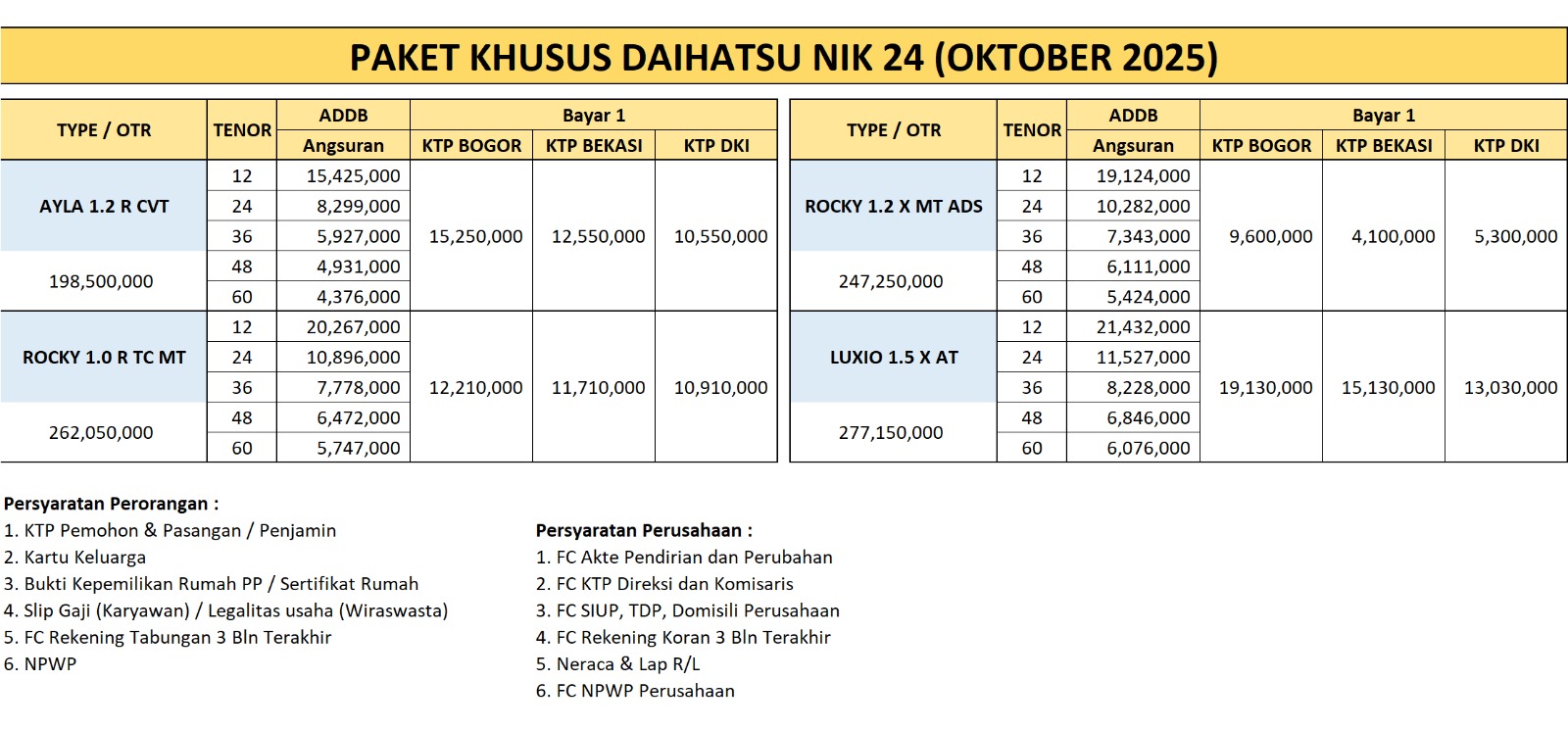 Dealer Mobil Daihatsu JABODETABEK Merupakan Dealer Mobil Daihatsu Terbaik Di Cibubur, Jakarta Timur, Jakarta Selatan, Jakarta Pusat, Jakarta Barat, Jakarta Utara, Kota/Kabupaten Bekasi, Kota Depok, Kota/Kabupaten Bogor, Kota/Kabupaten Tangerang, Kota Tangerang Selatan & Area Sekitarnya. Kami Akan Selalu Memberikan Banyak Informasi Menarik Tentang Promo Mobil Daihatsu Dan Juga Kejutan Menarik Lainnya, Seperti Aneka Diskon Besar, Kredit DP Terendah, Cicilan Murah Ringan, Dan Lain Sebagainya. Melalui Website Ini, Kami Ingin Menawarkan Banyak Kemudahan Dan Informasi Terbaru Tentang Mobil Daihatsu “Mobil Terbaik No.1 Di Indonesia”.